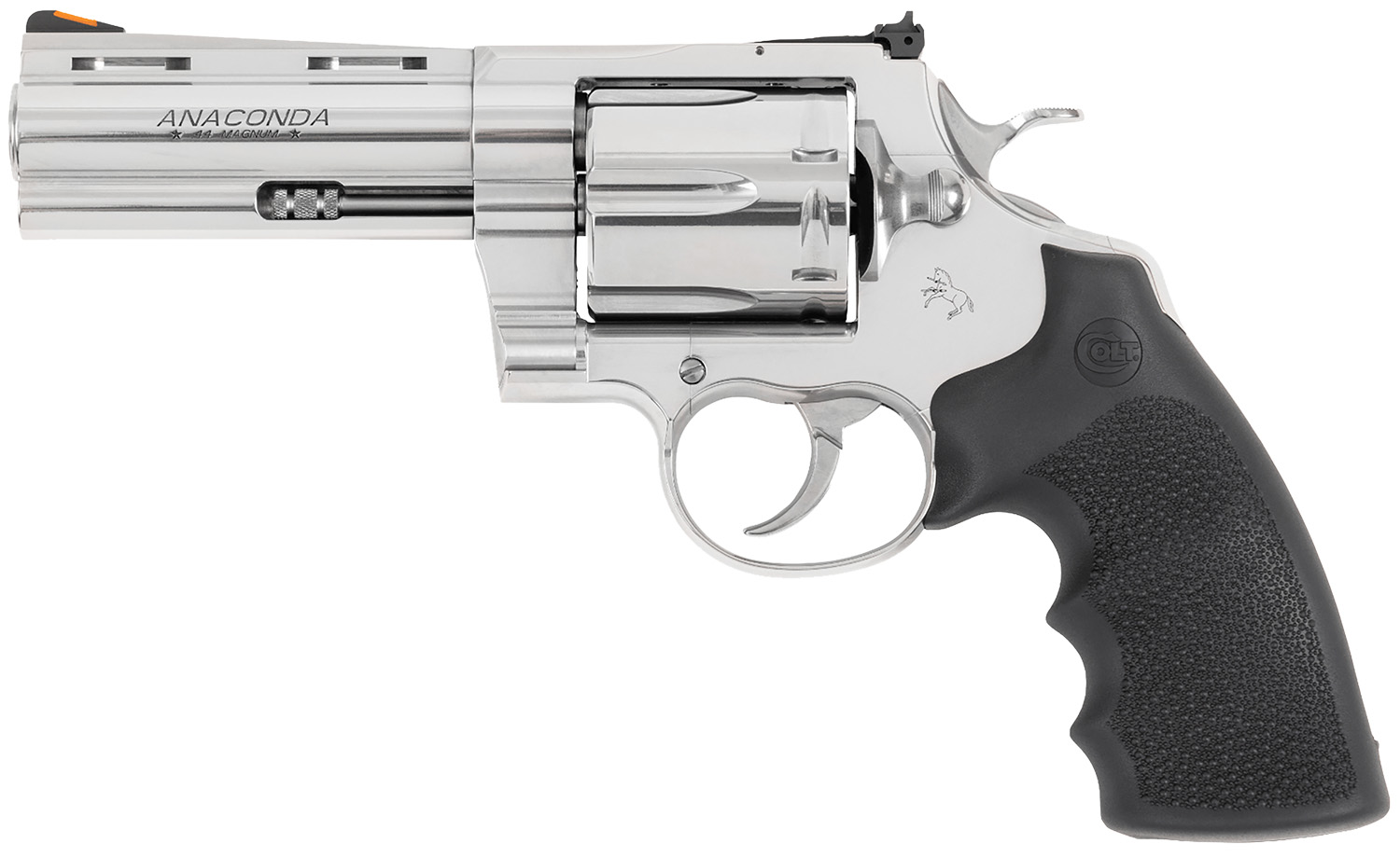 Colt Mfg ANACONDASP4RTS Anaconda 44 Mag 6 Shot 4.25″ Stainless Barrel, Cylinder & Frame, Black Hogue Rubber w/Finger Grooves Grip