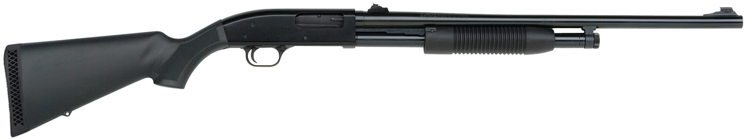 This Maverick 88 Slug model features a 3″ chamber, 6+1 capacity, 24″ blued barrel with adjustable rifle sights, and a rugged black synthetic stock and forearm.