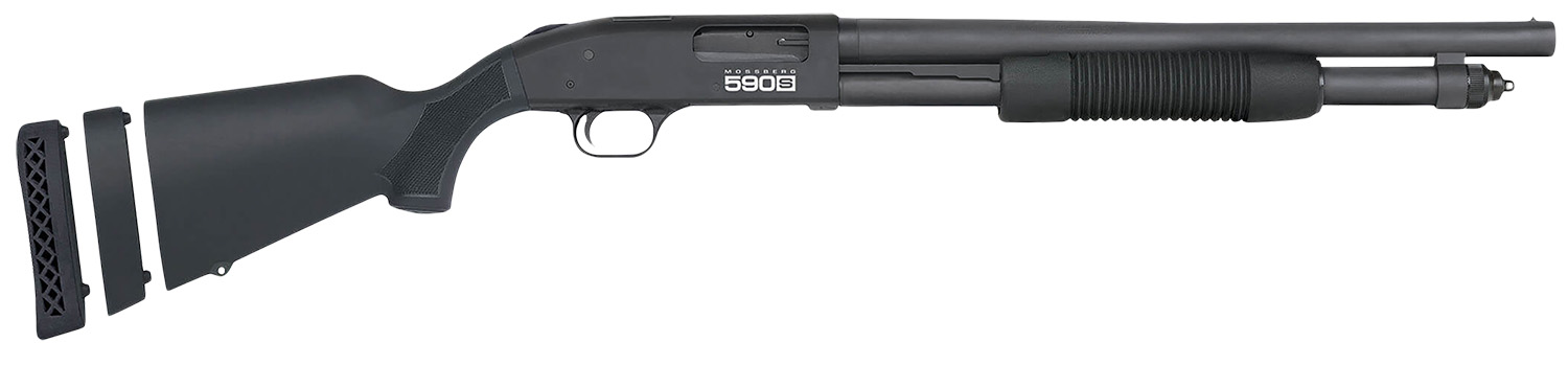 Mossberg 51607 590S Compact 12 Gauge Pump 3″ 5+1 18.50″ Matte Blued Stainless Steel Barrel, Black Drilled & Tapped Receiver, Adj LOP Black Synthetic Stock