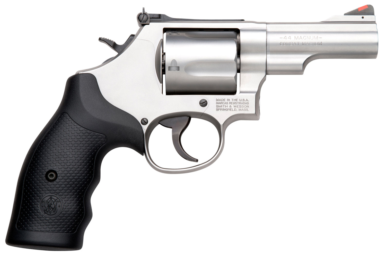 Smith & Wesson 10064 Model 69 Combat Magnum 44 Rem Mag Stainless Steel 2.75″ Barrel, 5rd Cylinder & L-Frame, Full Length Extractor Rod, Internal Lock