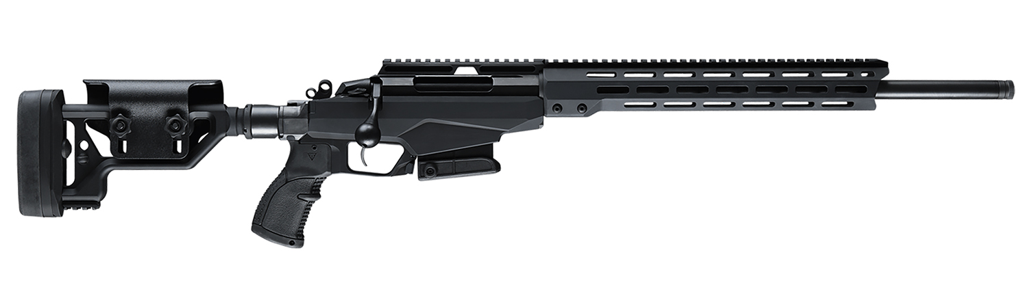 Tikka’s T3x Tactical A1 rifle offers military-grade specifications and outstanding long range accuracy. It features a cold-hammer forged barrel with 5/8×24 threaded muzzle. The receiver is constructed of aluminum and has a Picatinny rail ready for optics. The synthetic/aluminum chassis has a black finish and a recoil pad with LOP spacers. This model is chambered in 308 Winchester.